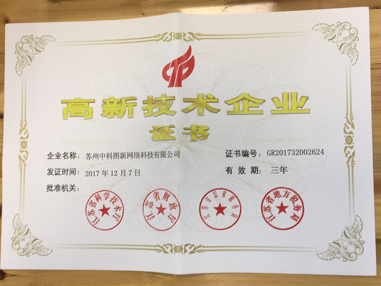 高新技術(shù)企業(yè)證書
