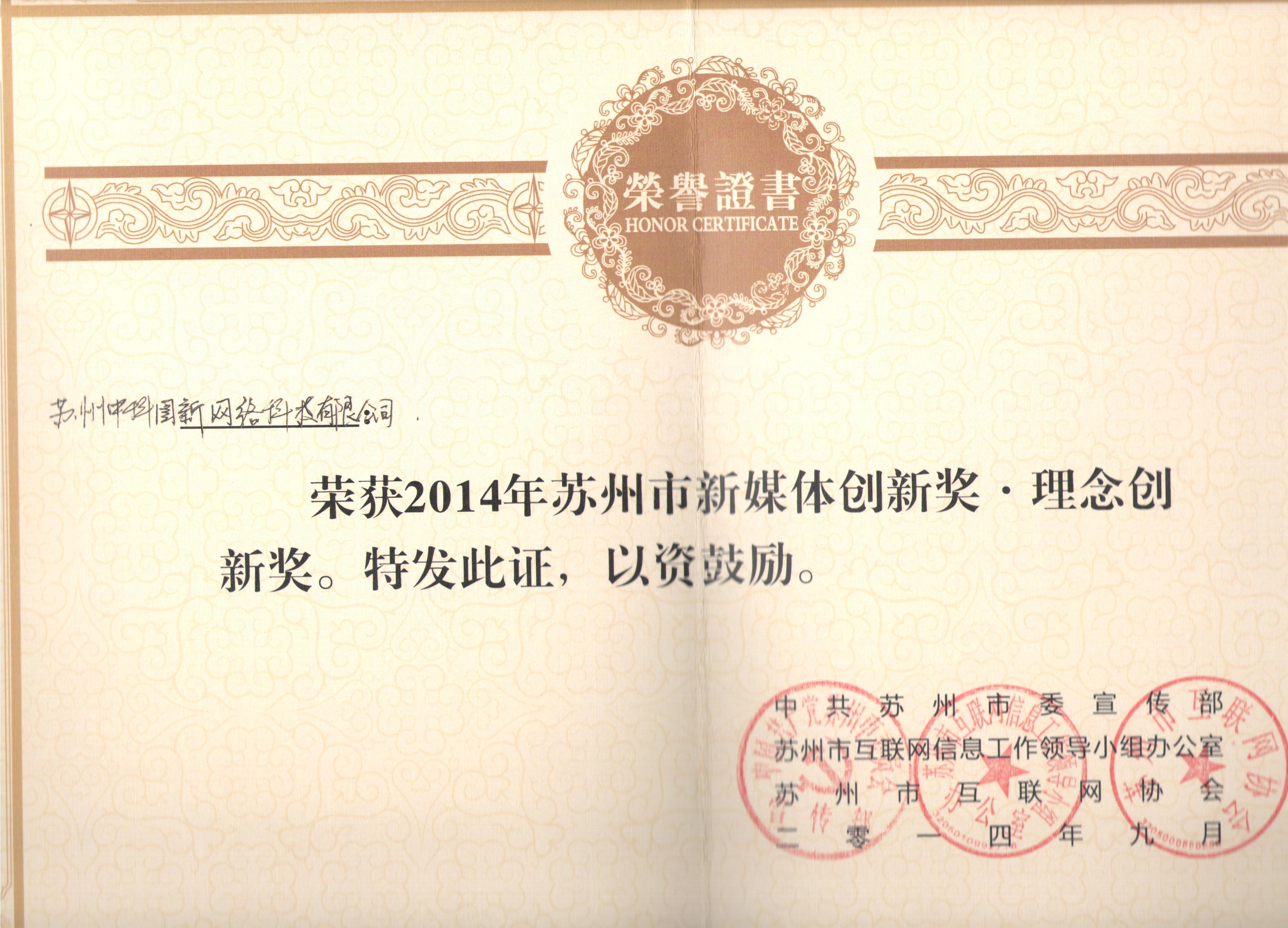 蘇州市新媒體創(chuàng)新獎-理念創(chuàng)新獎