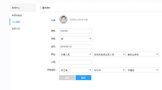 展示、管理个人的基本资料 点击编辑按钮,进入编辑模式,输入新的用户信息,点击保存,完成资料修改。