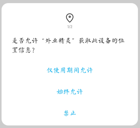 位置权限主要用来进行实时位置显示和轨迹记录,和搜索相关功能的运行,请点击“始终允许”,若使用手机系统版本为Android 10 以上,可以根据对定位的需求程度来进行选择使用“仅使用期间允许”或“始终允许”。