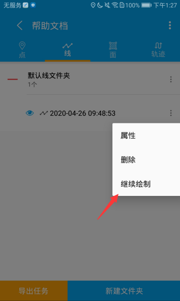继续绘制:此功能只针对线面开放,点击线或面要素右侧操作选项时会新增继续绘制选项,点击后会飞行至该线或面的位置并进入绘制模式,可继续将线或面绘制。