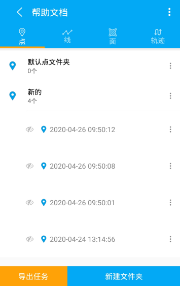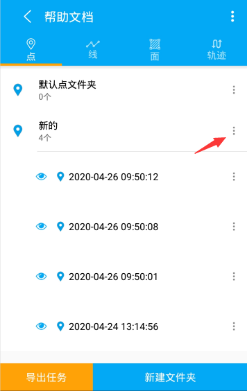 导出:点击文件夹操作选项中导出选项,会弹出导出弹框,可以针对需求进行KML/KMZ、SHP、Execl 进行导出。