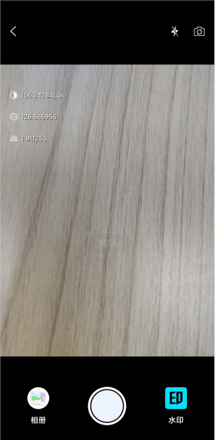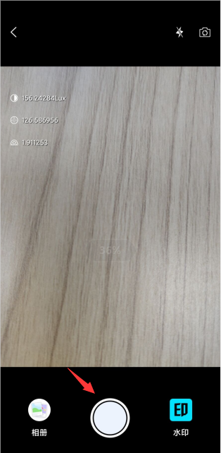 拍照:点击下方拍照按钮即可进行拍照,拍照后的照片会存至水印相册,可通过左侧相册图标点击放大查看