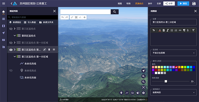 功能強(qiáng)大、簡(jiǎn)明易用的三維場(chǎng)景在線搭建,滿足實(shí)景三維和人工模型同場(chǎng)景展示的需求